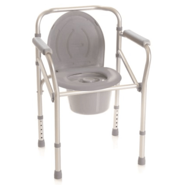 O design em cinzento e alumínio combina funcionalidade com estética moderna, integrando-se harmoniosamente em qualquer casa de banho. A cor neutra permite que o equipamento se torne discreto no ambiente, mantendo a dignidade do utilizador.
