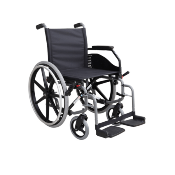 O sistema de rodas de alta qualidade é uma das características mais importantes desta cadeira de rodas manual. As rodas traseiras maciças de 600mm proporcionam excelente aderência e estabilidade, garantindo movimentação suave em diversas superfícies.